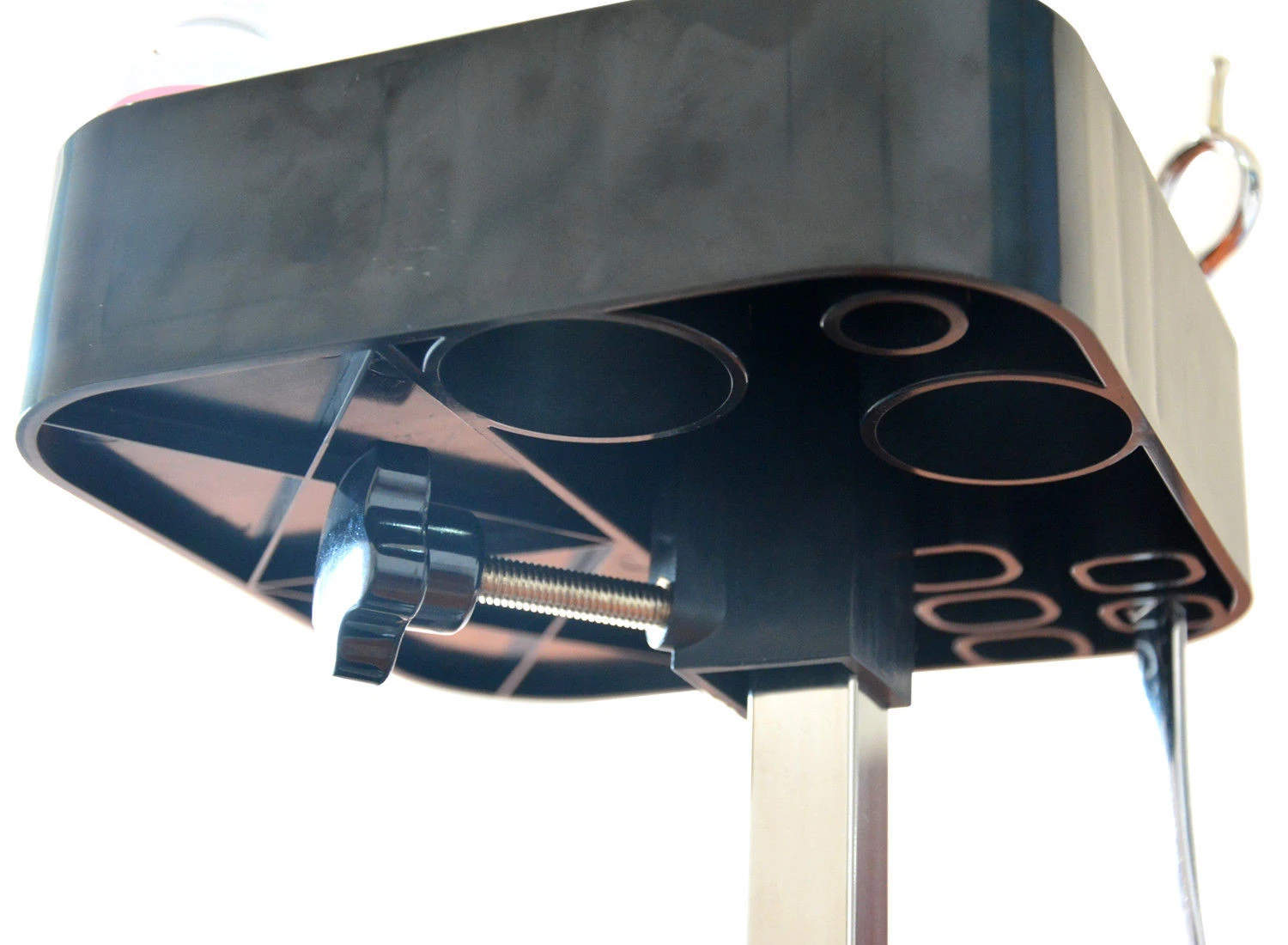 - The new tool caddy mounts to the grooming arm post, it is height adjustable.